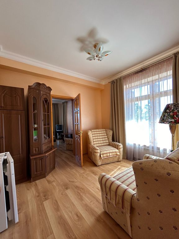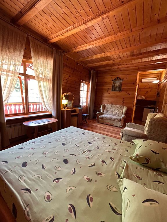 Однокомнатные номера с двуспальной кроватью и раскладным диваном. Размещение до 3х гостей.