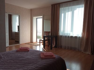 Гостеприимные хозяева, шикарный вид с балкона, 2 комнаты, кондиционер, в номере чайник, чашки, холодильник.
