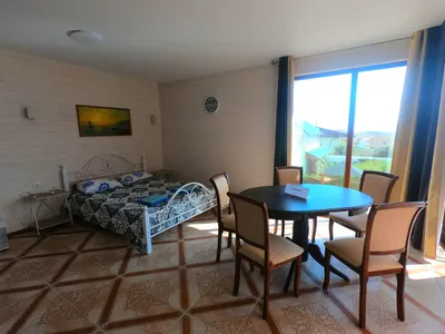 Прекрасное место. Есть всё необходимое для комфортного отдыха: вода с хорошим напором без перебоев, кухня с посудой, кондиционер, 2 телевизора, бассейн, уютная территория. Приветливые хозяева. До пляжа удобно добираться как пешком по асфальтированному тротуару, так и на машине.
