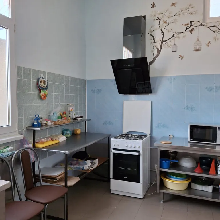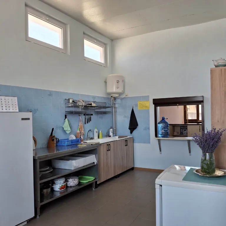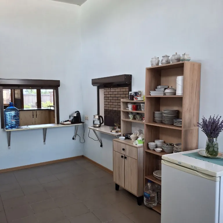 Большая общая кухня – столовая на 1 этаже. Имеется зона отдыха, возможность приготовить шашлык, большая парковка для вашего автомобиля (ведется видеонаблюдение).