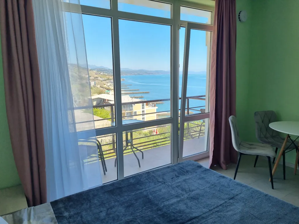 замечательный номер,хорошее местоположение,5 мин пешком до моря,каждое утро просыпались под шум волн🤗морюшко видно из окна.Отдельное спасибо хозяюшке Светлане,всё рассказала,показала)))
