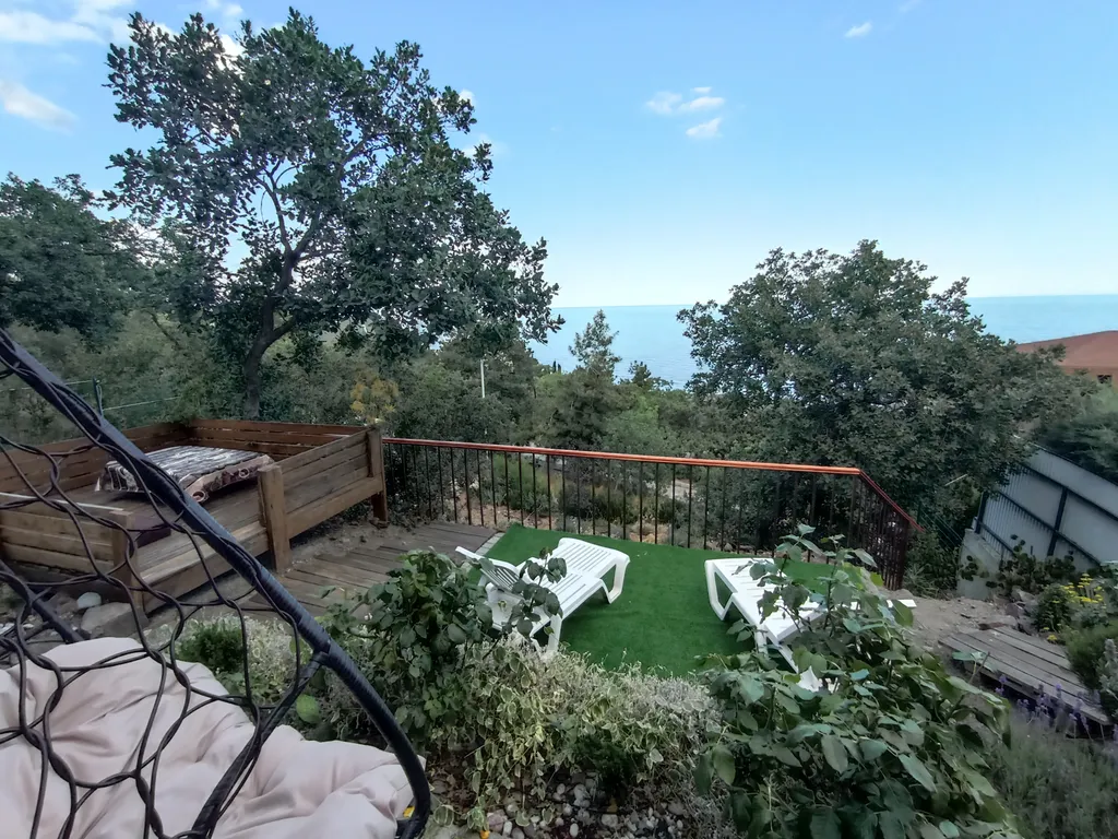 Очень необычное место, очень малолюдное. Но это даже плюс, если хотите быть наедине с морем. :) В 3-х километрах находится Алушта, с кафе и магазинами, развлекательными заведениями. Море было чистое, но пляжей как таковых их особо и нет, купаться с волнорезов только. Мы были с ребенком, в первый день это очень огорчило нас. Но!!! Мы нашли решение! Ходили на соседнюю базу (15 минут пешком) «Дельфин», у них хороший пляжик небольшой, где могут безопасно купаться дети. И ещё есть «дикий пляж», людей практически там нет, много чаек, купаться страшновато, так как ты там находишься один. :) Но нам понравилось! Вид на море прекрасный, нижние постройки ничего не загораживают, вы любуетесь и наслаждаетесь рассветом, морем лазурным и чистым! Хозяйка очень вежливая и интеллигентная женщина, всегда выполняла наши просьбы и интересовалась, как дела. Качели-гнездо — это вообще заслуживает отдельного уважения! Утром и вечером я просто там зависала, балдея от вида!