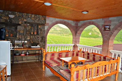 Красивое место в виноградниках. Красивая ухоженная территория с экзотическими растениями и фруктами. Приветливые хозяева. Огромный зал столовая и большая спальня. Всё необходимое для отдыха имеется. Рекомендую!