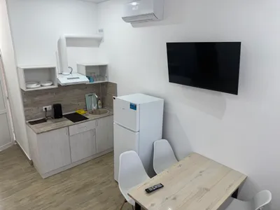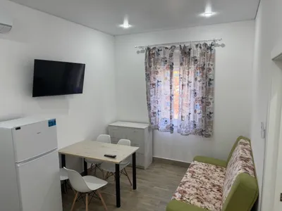 Здесь созданы все условия для комфортного проживания — есть кондиционер, холодильник, телевизор, фен, утюг, посуда, чайник, микроволновая печь, кухонная плита, сейф, терраса.
